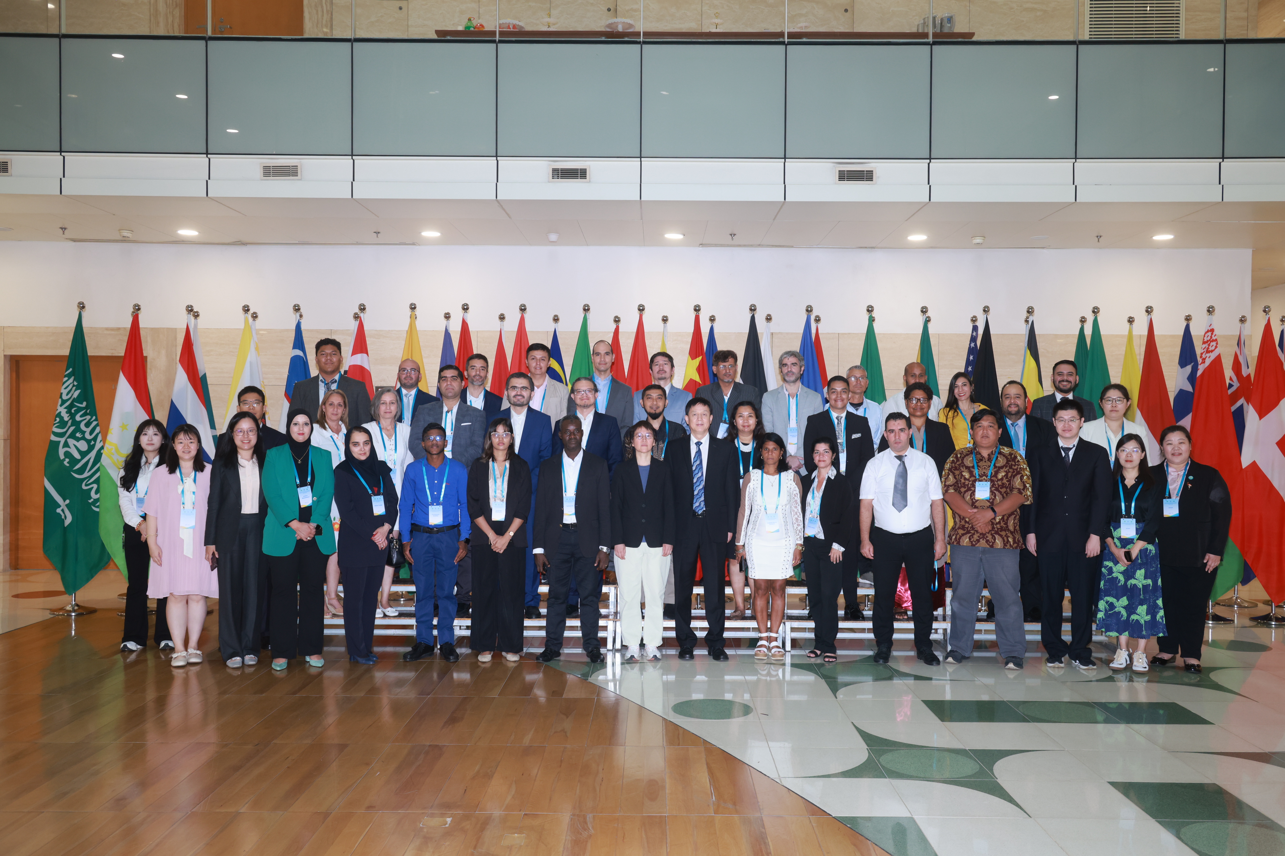 图为研讨班全体学员合影 开班仪式之后,“一带一路”绿色发展国际联盟代表就中国生态环保国际合作及推动绿色“一带一路”建设的最新进展面向学员开展现场教学。据介绍,已有来自47个国家的180多个中外合作伙伴加入“一带一路”绿色发展国际联盟。联盟构建了以“一带一路”绿色创新大会为核心,以绿色发展投融资合作伙伴关系(GIFP)、绿色低碳专家网络(GLEN)、“一带一路”生态环保大数据服务平台为依托,以政策研究和能力建设为支撑的“一机制三平台两支撑”的业务架构。此次承办研讨班,则是联盟支持应对气候变化南南合作能力建设的重要实践。